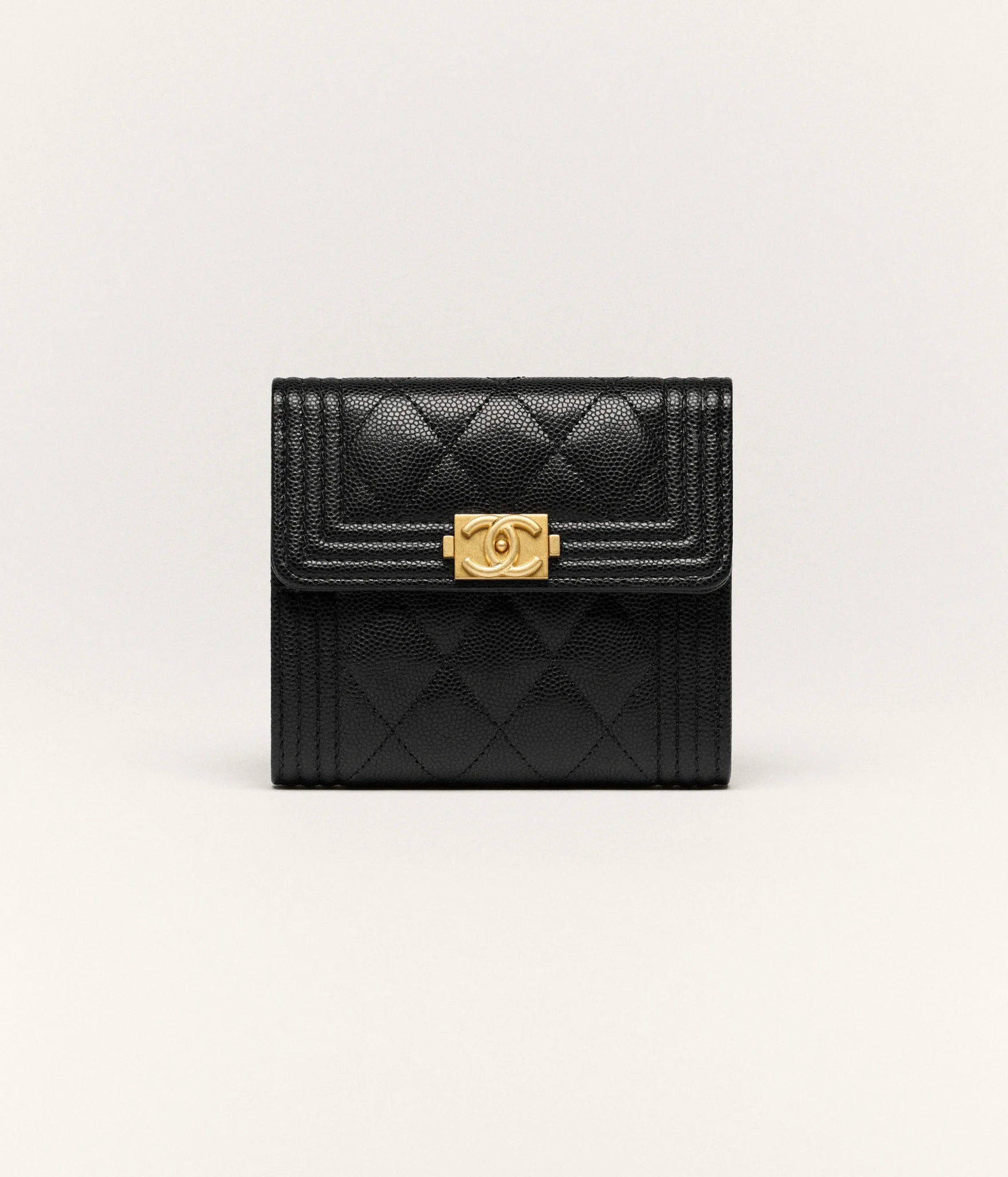 Chanel Boy Chanel Small Flap Wallet Grained Shiny Calfskin & Gold-Tone Metal - Black