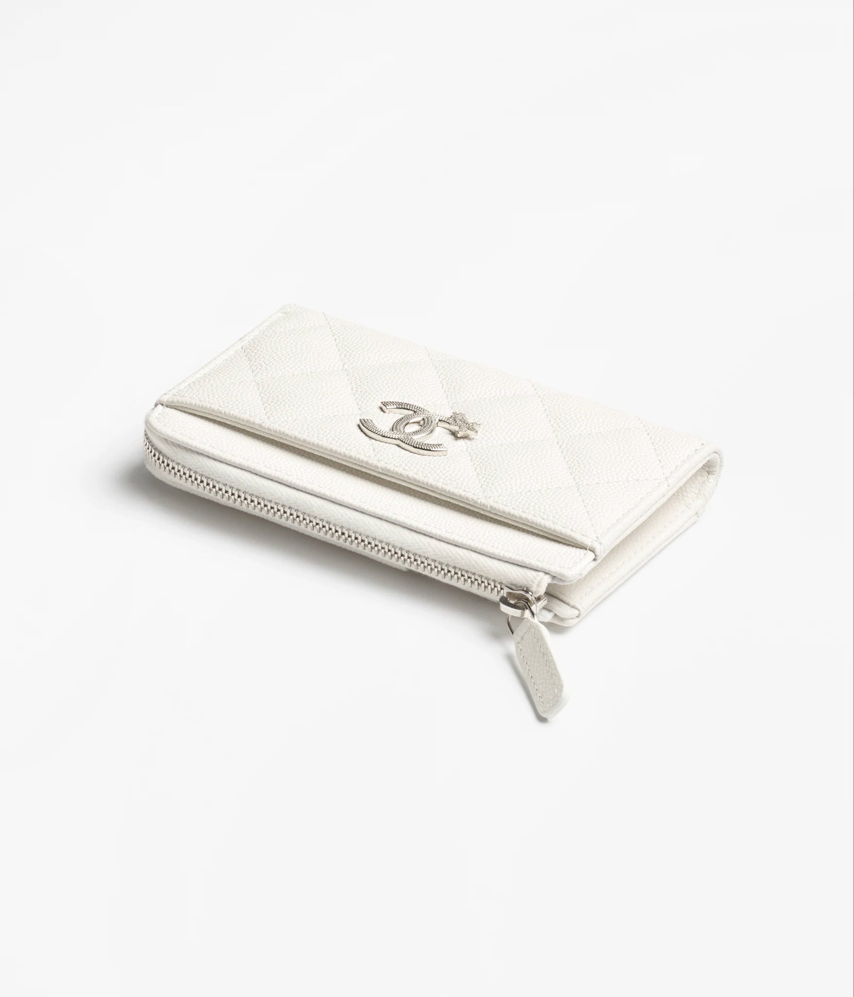 Chanel Card Holder Shiny Grained Calfskin, Strass & Silver-Tone Metal - White