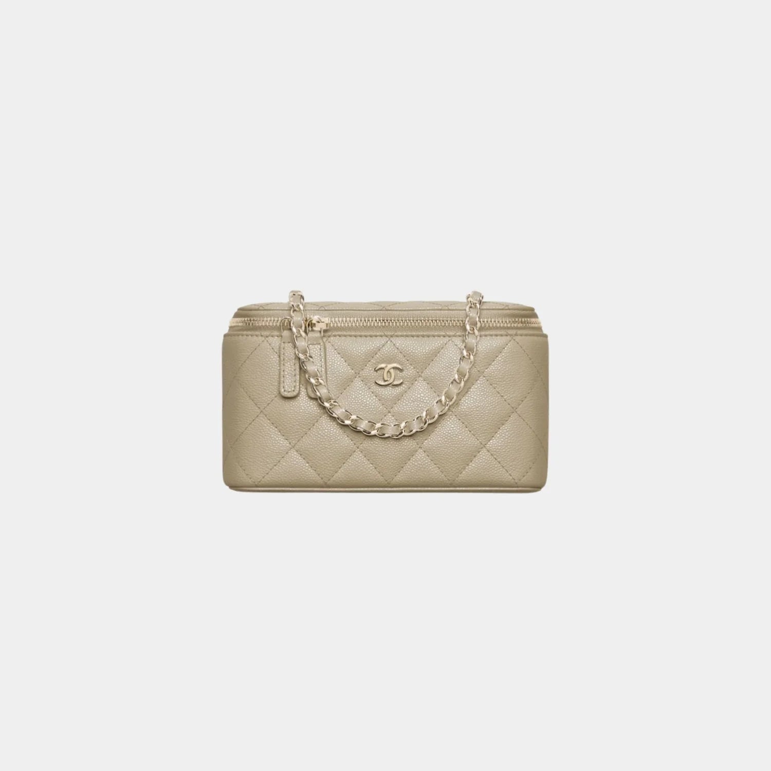Chanel Classic Long Vanity with Chain in Grained Shiny Calfskin - Khaki