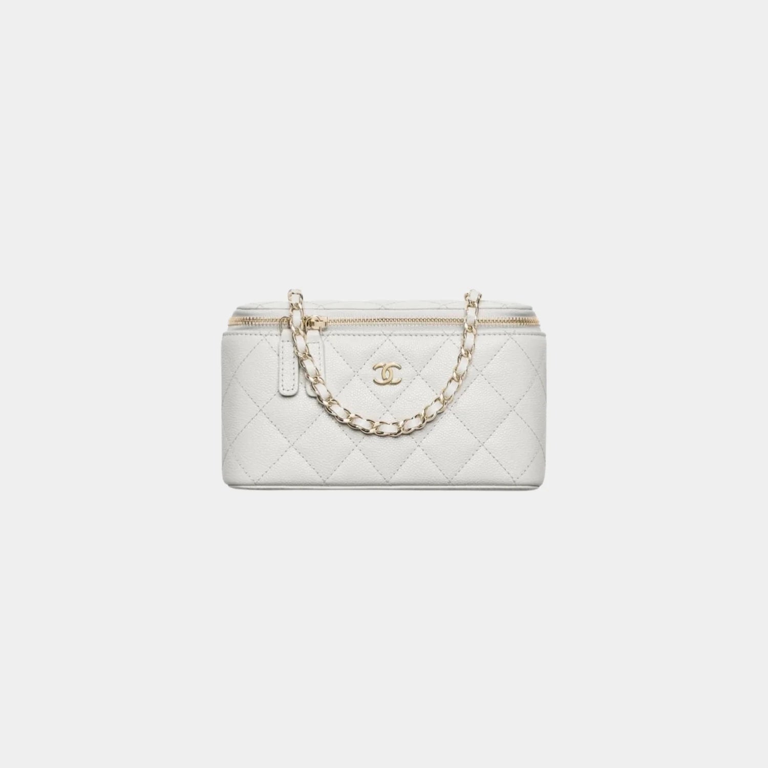 Chanel Classic Long Vanity with Chain in Grained Shiny Calfskin - Light Grey