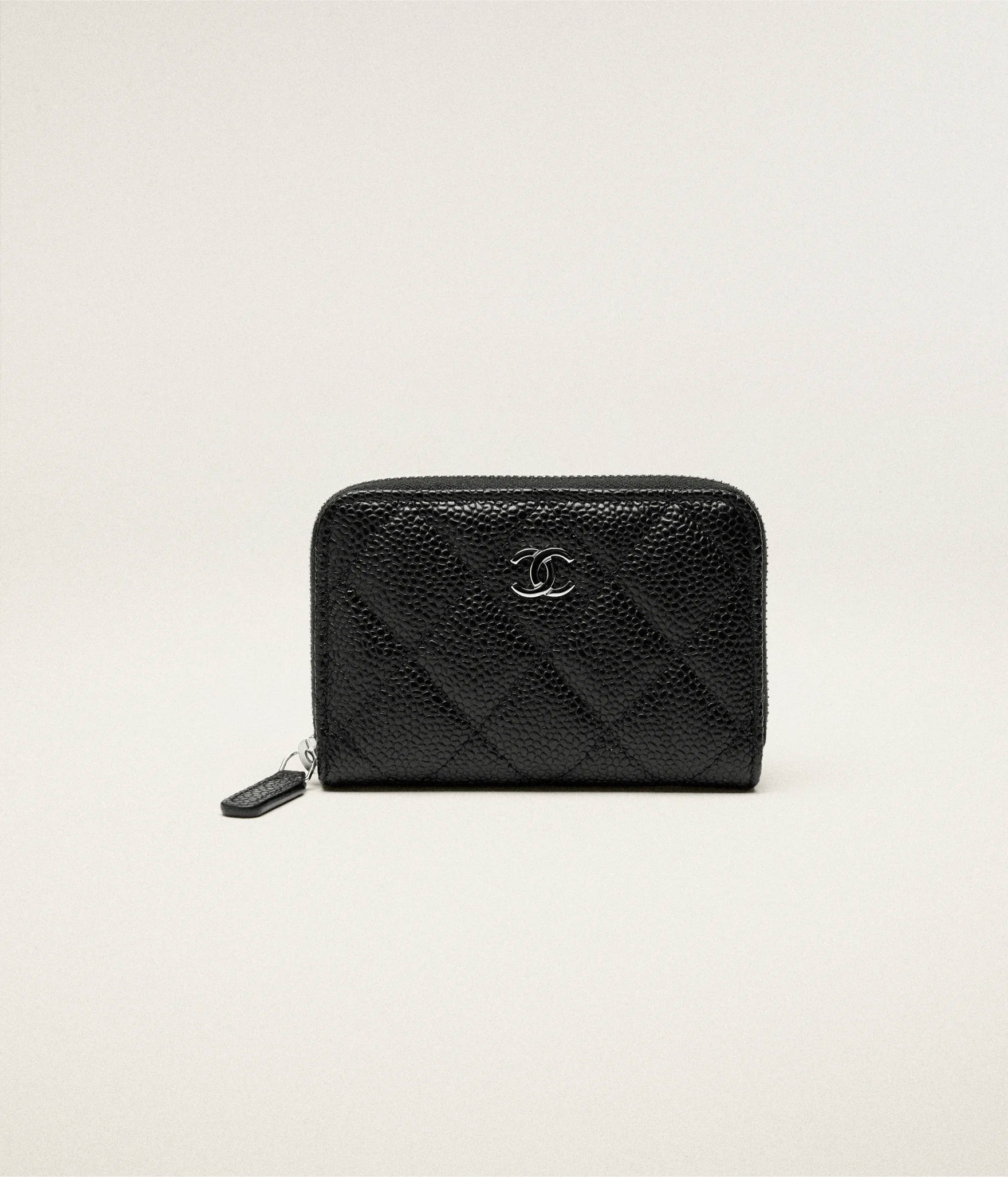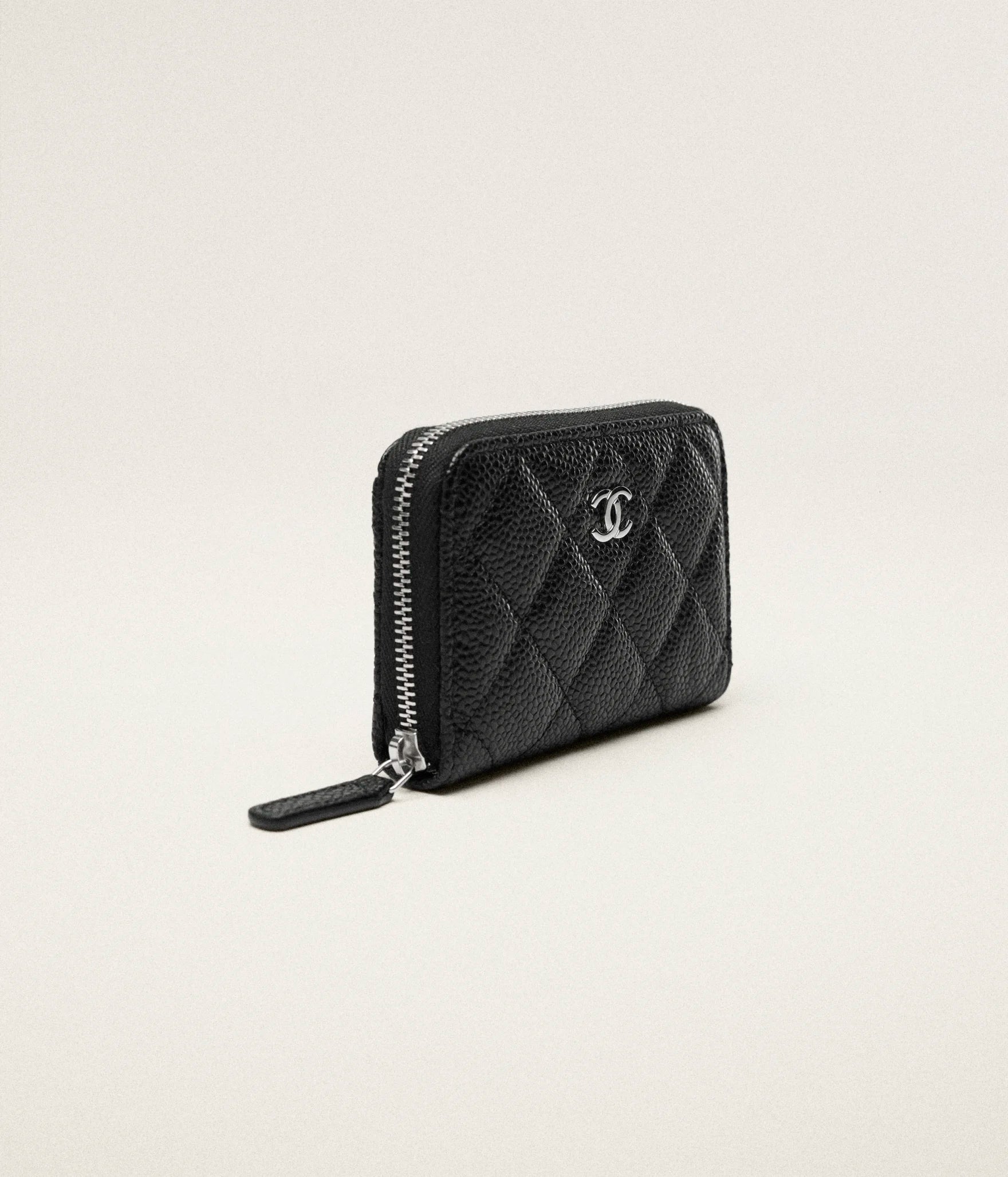 Chanel Classic Zipped Coin Purse Grained Calfskin & Silver Metal - Black