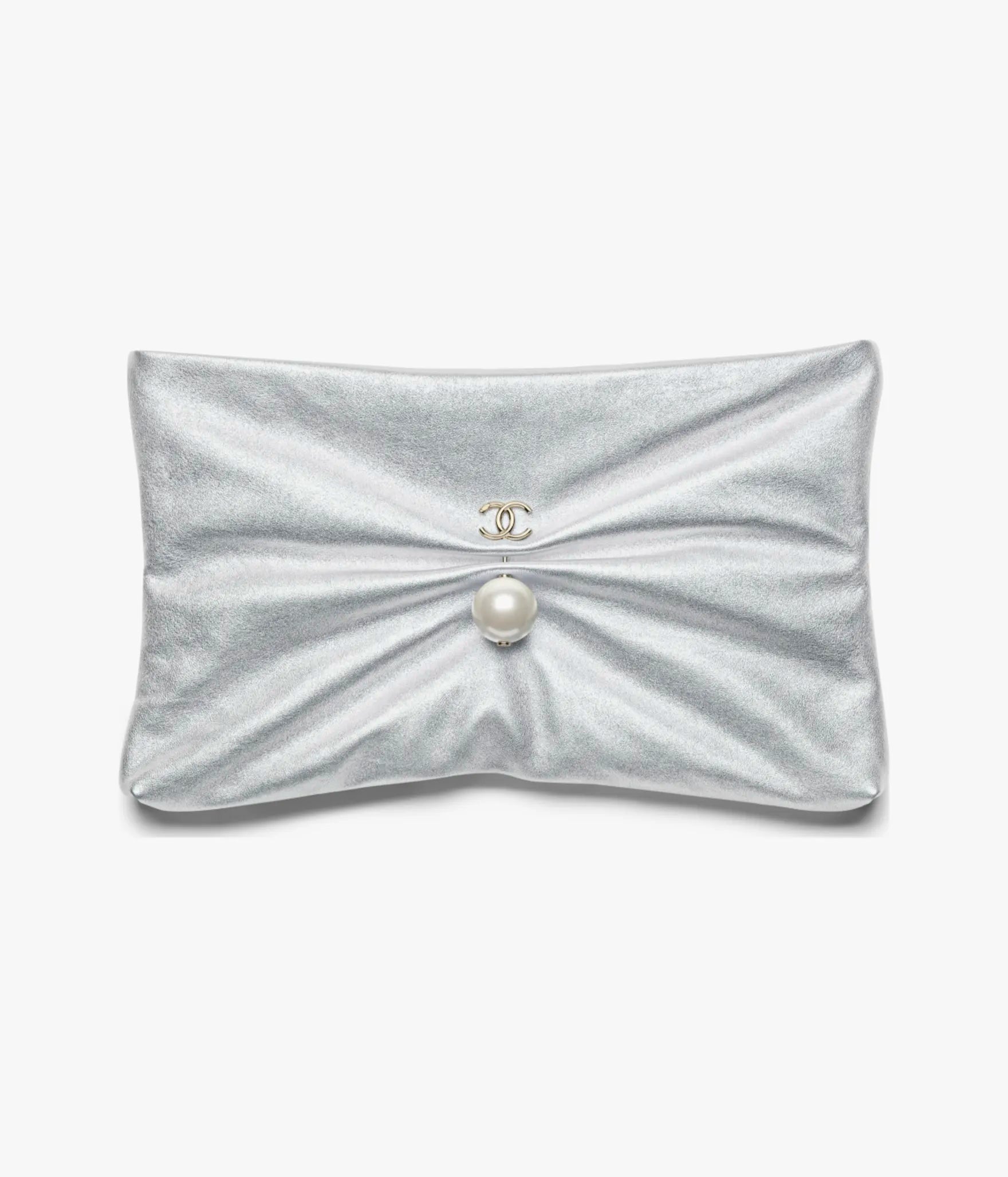 Chanel Large Clutch Metallic Lambskin, Imitation Pearl & Gold-Tone Metal - Silver