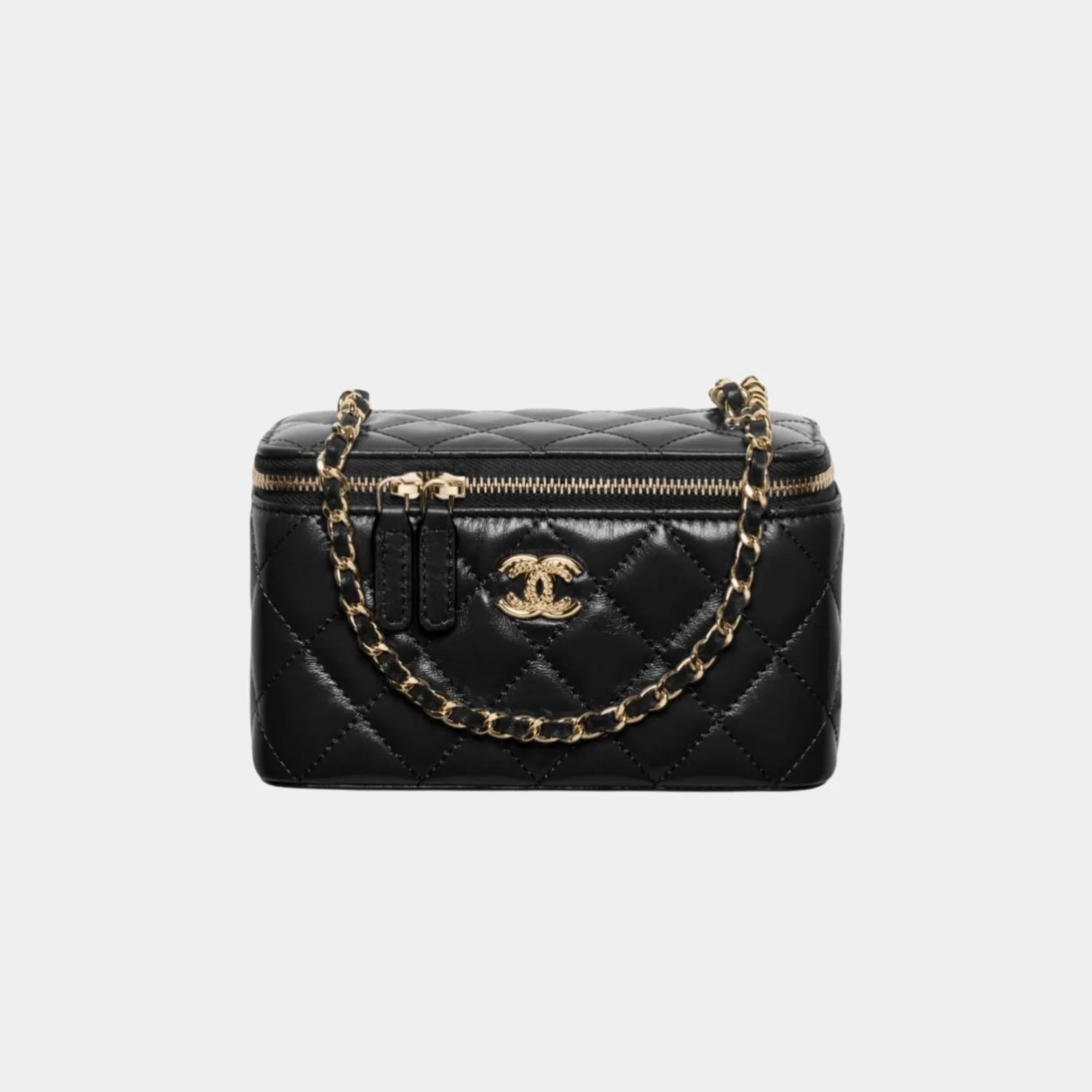 Chanel Long Vanity with Chain in Shiny Lambskin and Gold Tone - Black