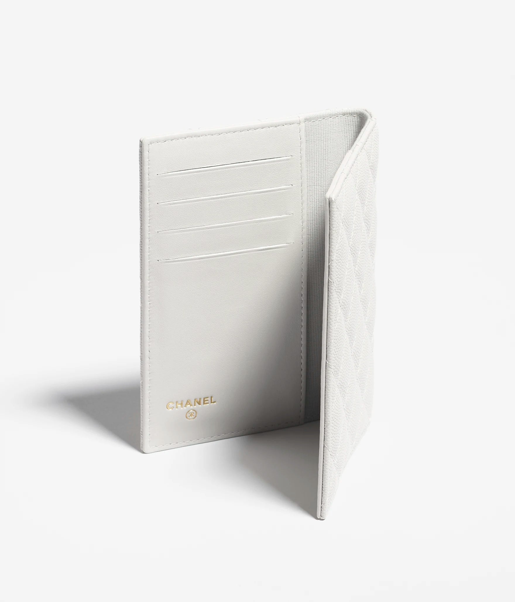 Chanel Passport Holder Grained Shiny Calfskin & Gold-Tone Metal - Light Grey