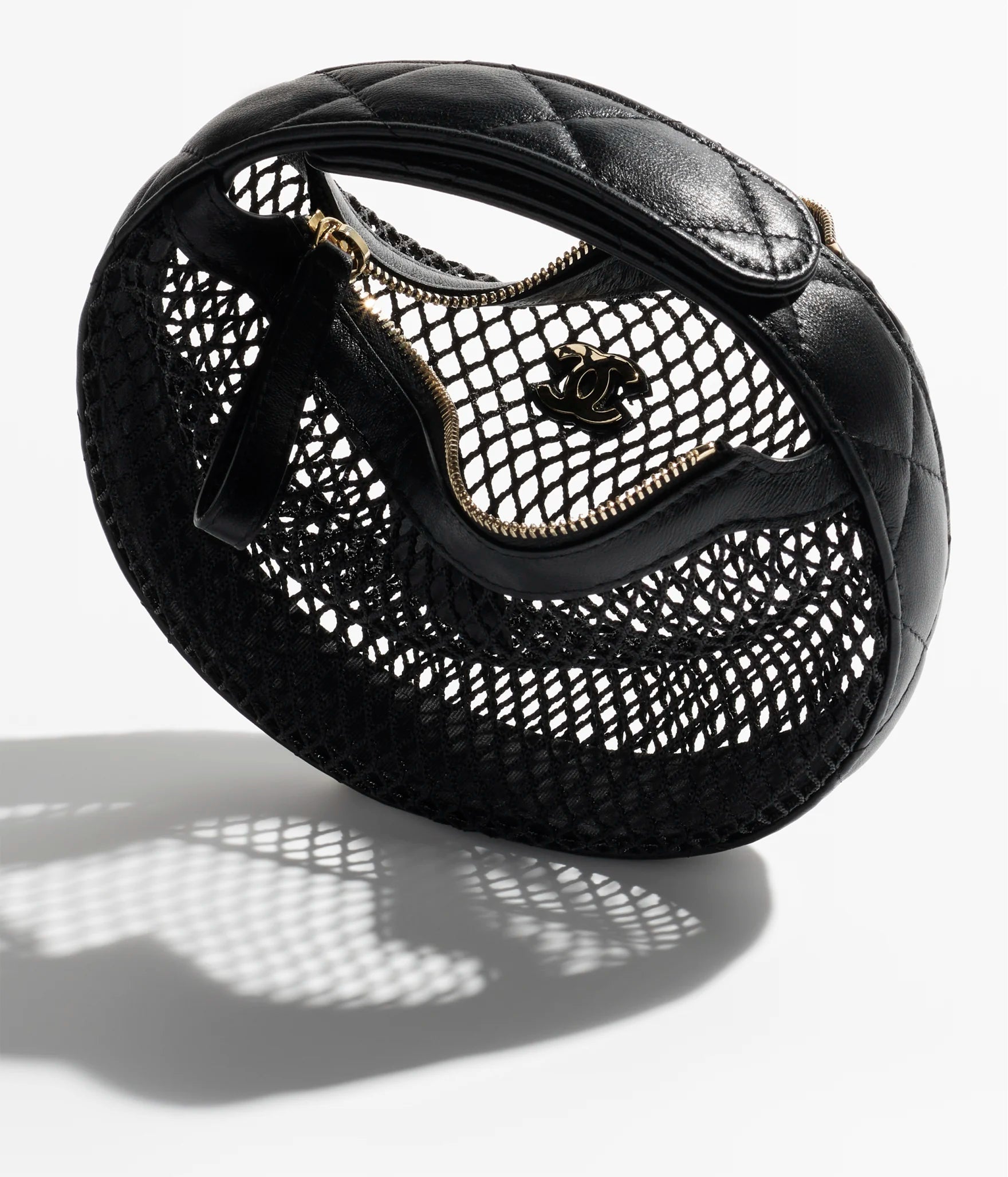 Chanel Pouch Mesh, Shiny Lambskin & Gold-Tone Metal - Black