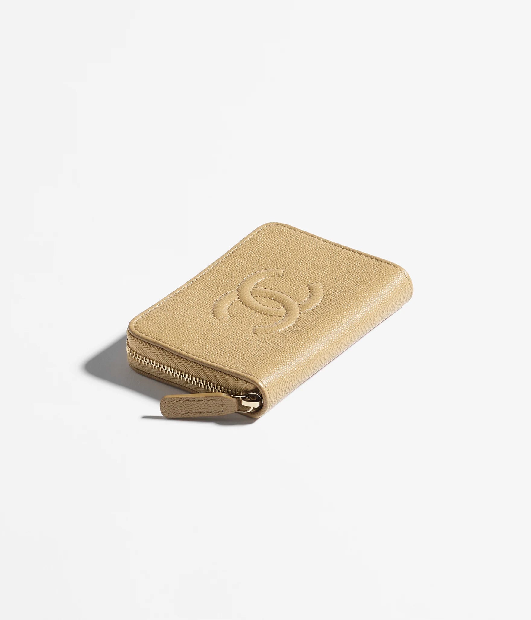 Chanel Zipped Coin Purse Grained Shiny Calfskin & Gold-Tone Metal - Dark Beige
