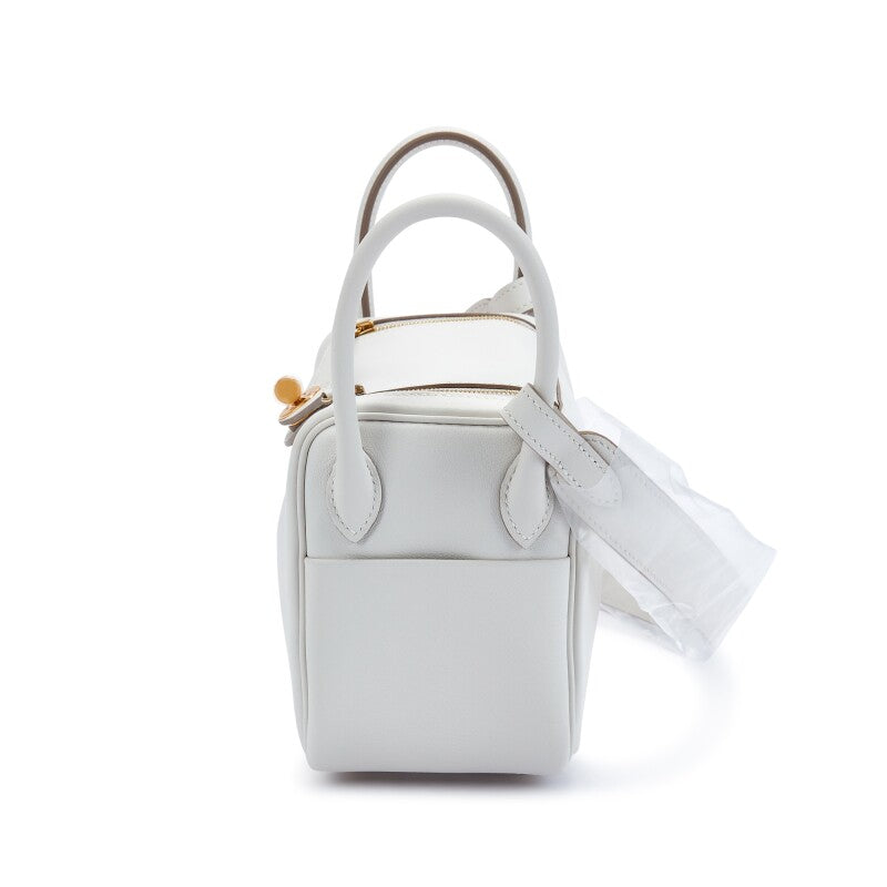 Hermès Gris Pale and Gris Meyer Swift Verso Mini Lindy Gold Hardware