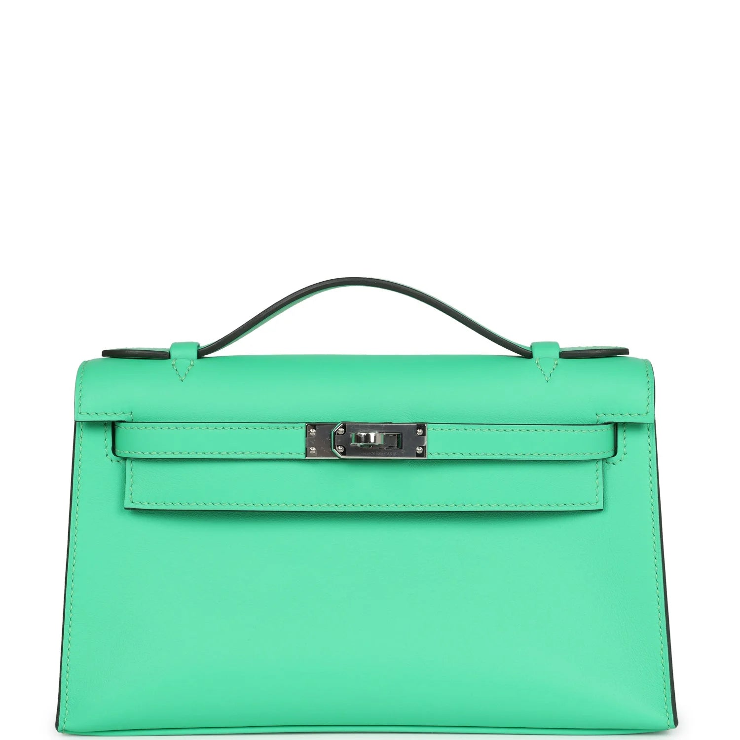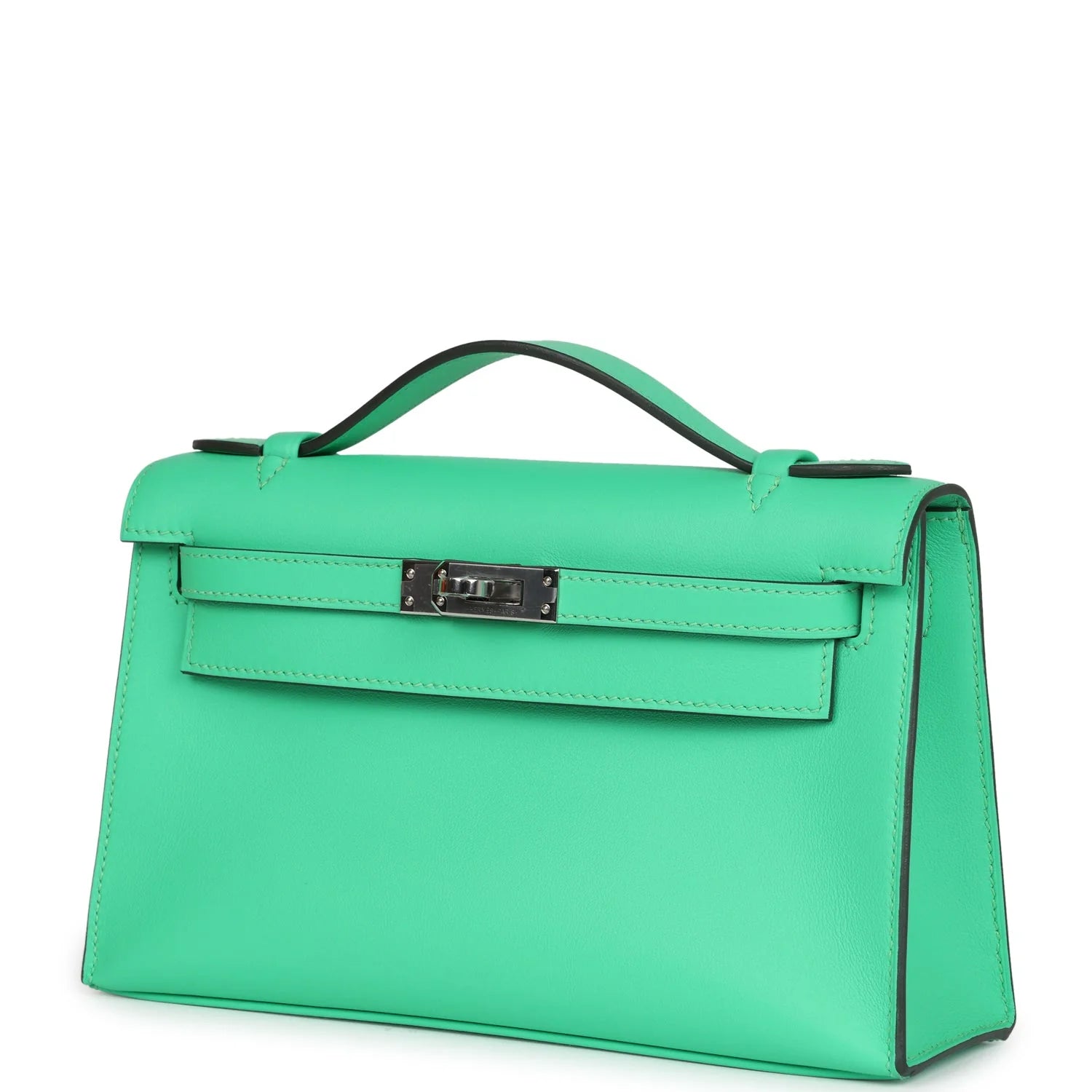 Hermès Kelly Pochette Vert Comics Swift Palladium Hardware