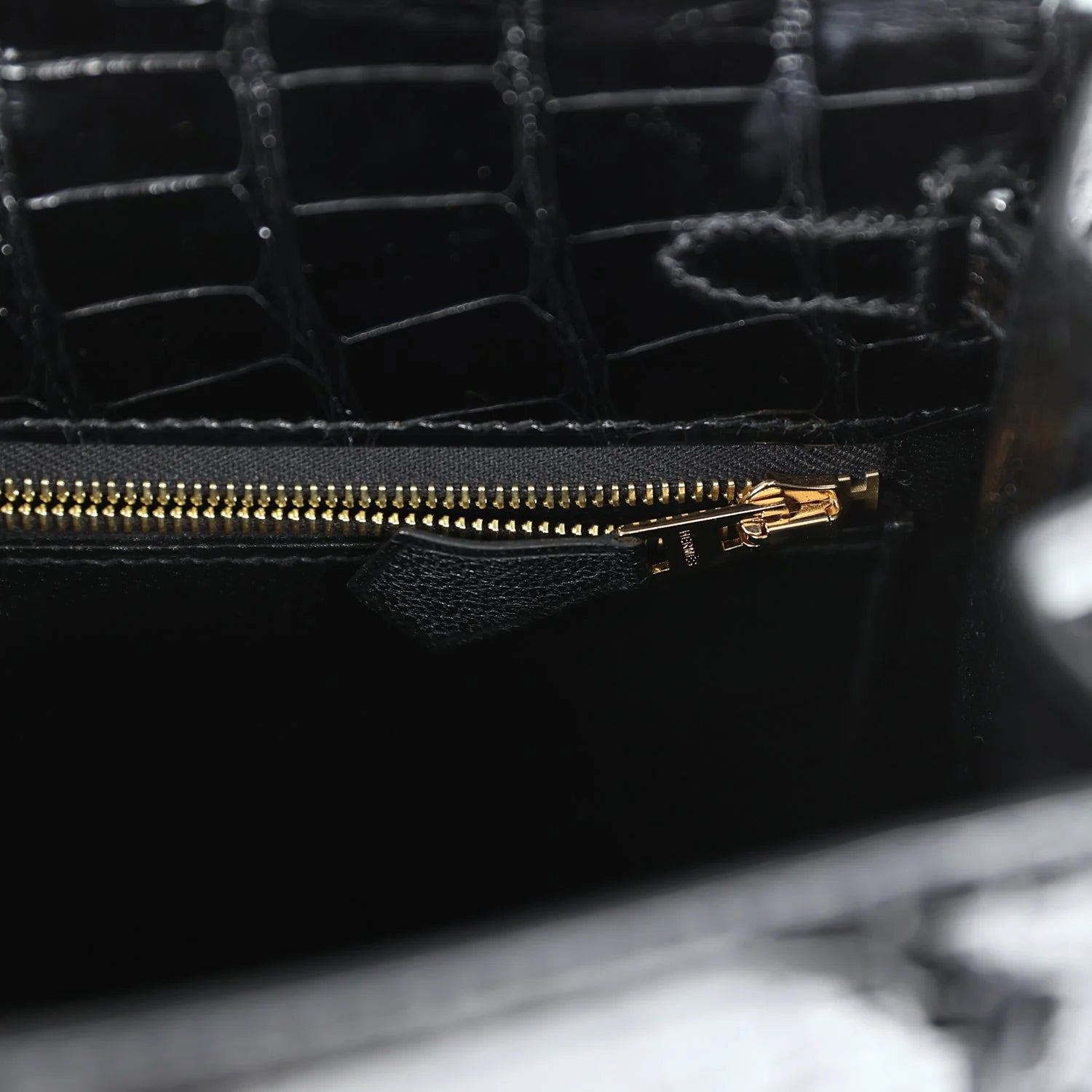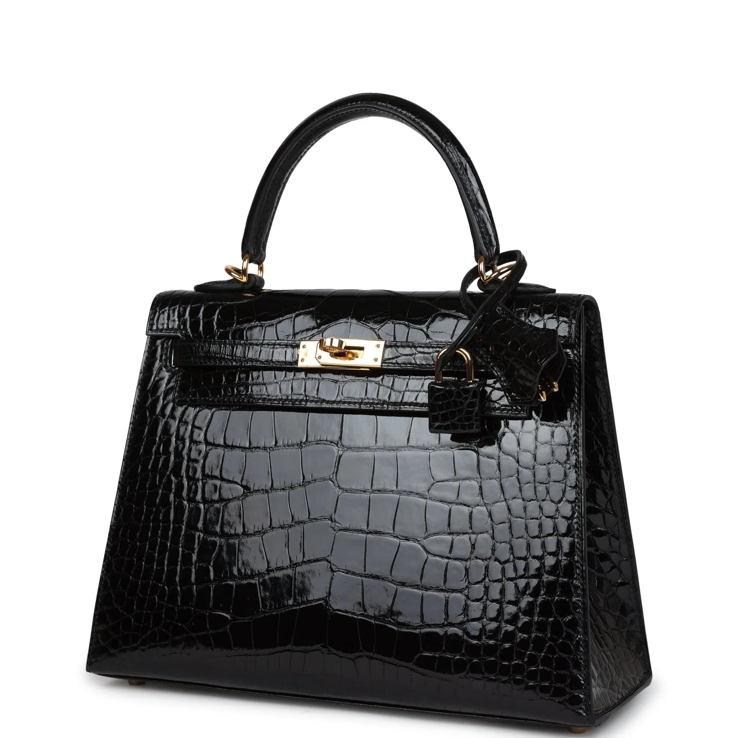 Hermès Kelly Sellier 25 Black Shiny Alligator Gold Hardware