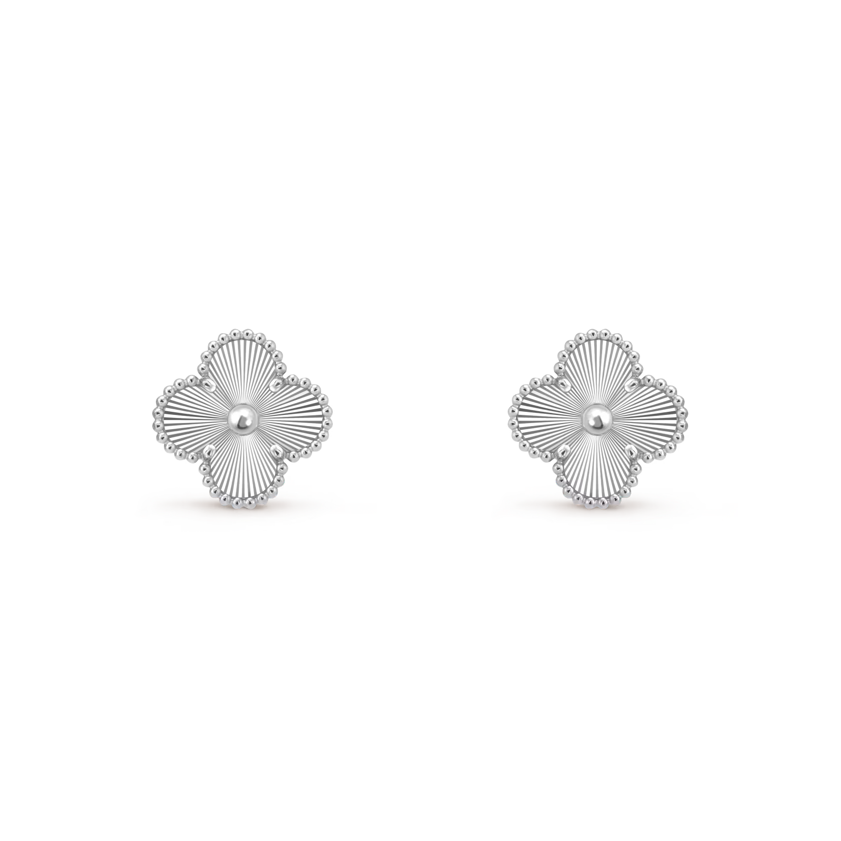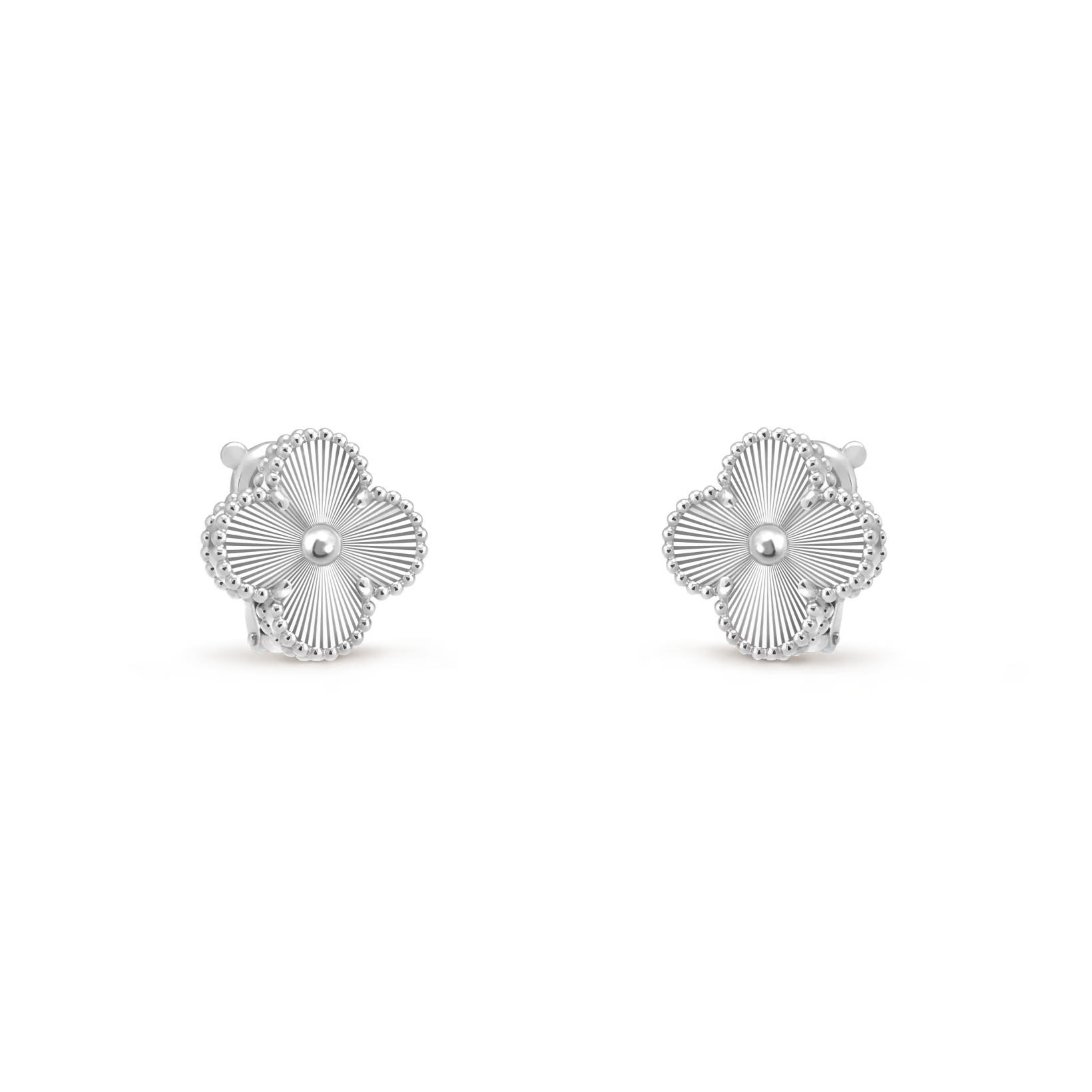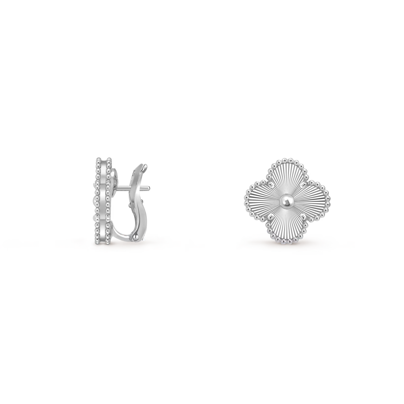 Van Cleef & Arpels, Vintage Alhambra earrings, guilloché rhodium plated 18K white gold